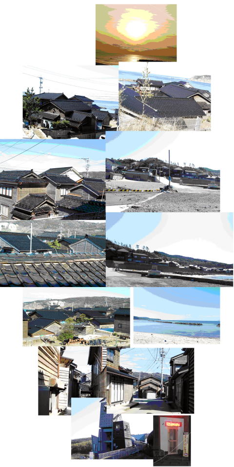 黒島の青い海と海岸に連なる黒い瓦屋根とのコントラスト、 そして剛毅さと気品を兼ね備えた路地空間には、越前船 から受け継がれた誇り高き船乗り文化が息づいている。